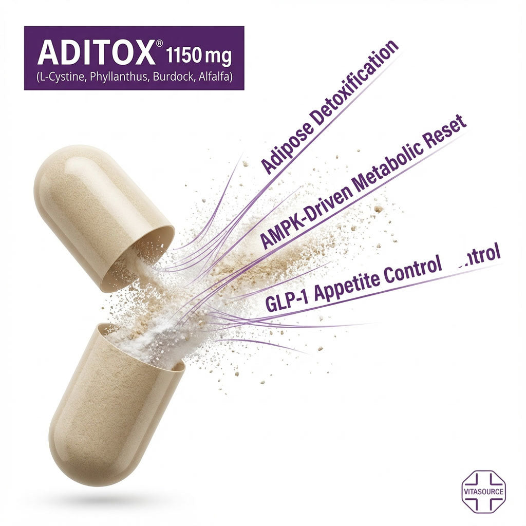 Aditox is know to supportcellular fat burning and cleanup by activating AMPK, which boosts mitochondrial fat oxidation and cellular autophagy to clear out damaged cell parts and toxic fat buildup.*