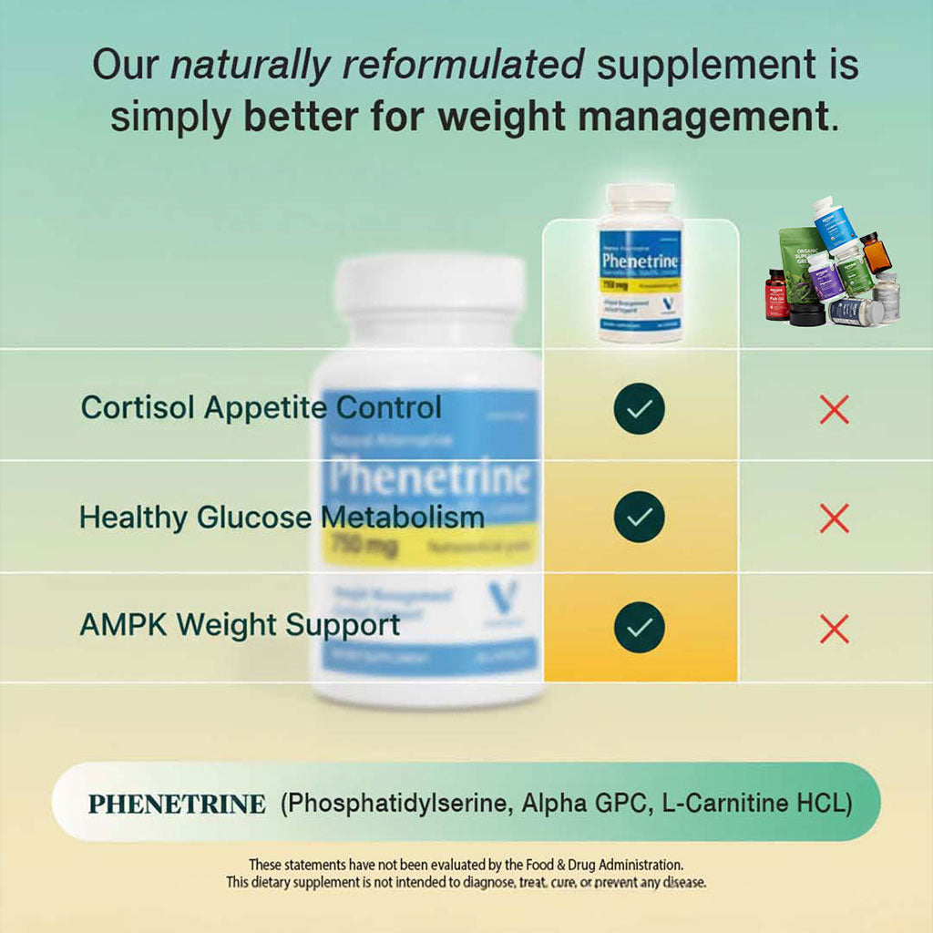 Phenetrine is a natural reformulated weight management supplement that helps moderate cortisol, supports healthy glucose metabolism, and activates AMPK to promote healthy fat loss without unwanted side effects.*